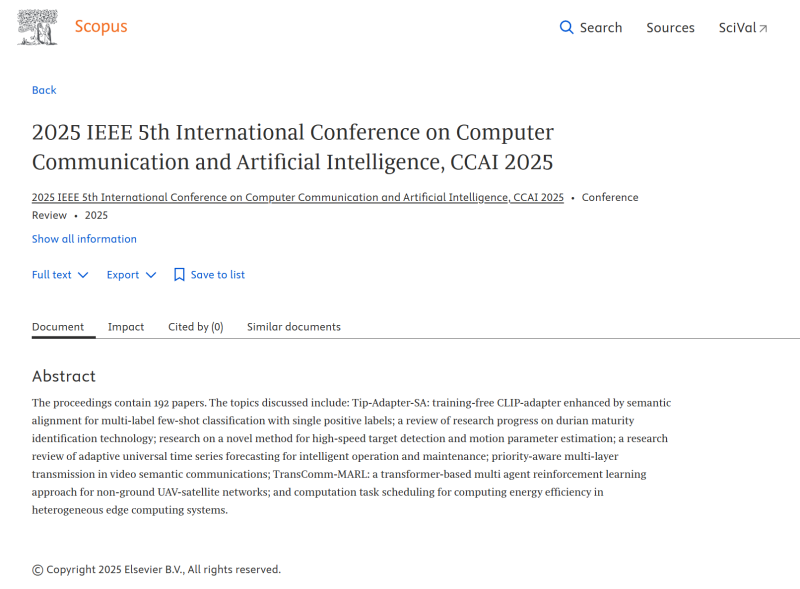 Papers of CCAI2025 are indexed by Ei Compendex and Scopus!