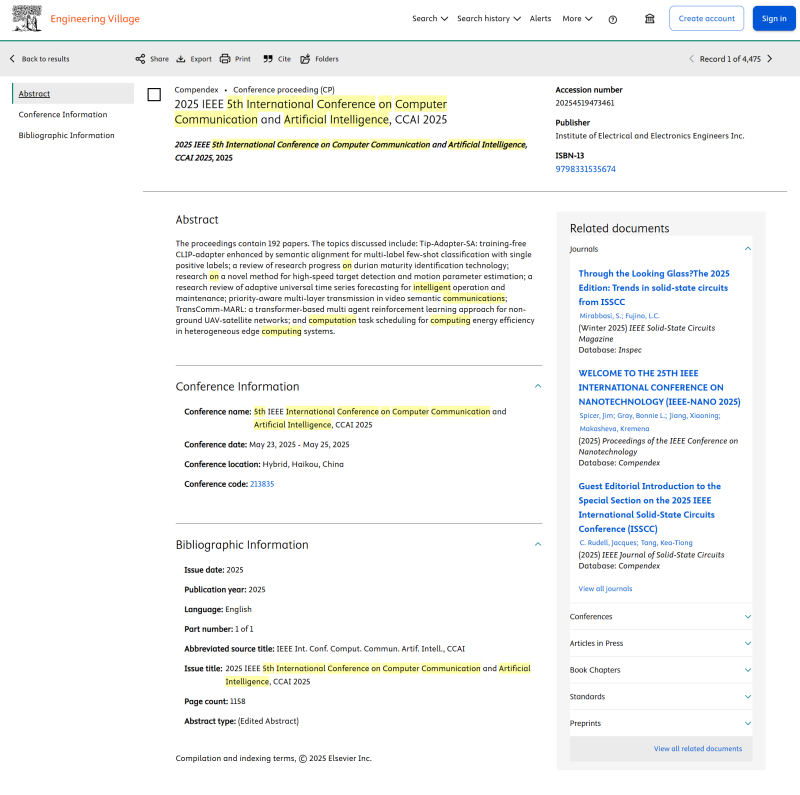 Papers of CCAI2025 are indexed by Ei Compendex and Scopus!